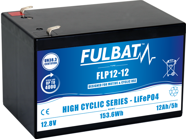 FLP12-12 jest częścią serii FLP – High Cyclic. Ten akumulator 12 V 12 Ah LiFePO4 oferuje wiele zalet w porównaniu do akumulatorów kwasowo-ołowiowych pod względem masy, wydajności cyklicznej, bezpieczeństwa i mocy.
